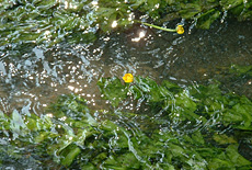 ゴミが減ったおかげで水も澄み、生育地は広がりました。夏にはたくさん花をつけます
