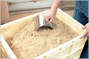 A Large variety of powdered aromatic wood, herbs and spices is measured accurately and mixed according to the type of incense. The powders are sifted to mix evenly and remove particles.