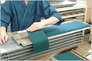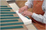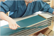 Cut the end of any incense that sticks off of the Tehon-ita to make it even. Move again, to another board to dry. At this point, some of them are cut further to meet product specifications.