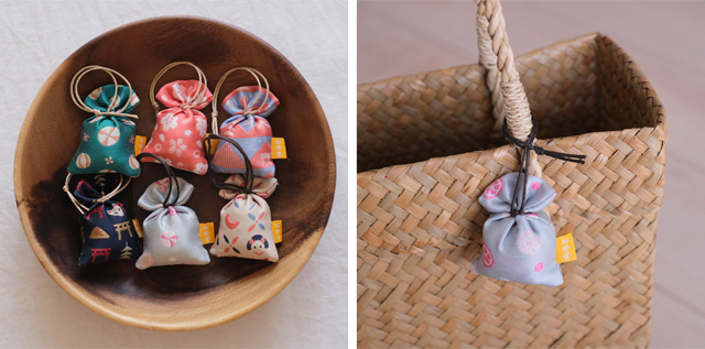 薫々のとなりのお店「カランコロン京都」とのコラボレーションによる匂い袋。