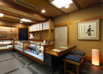 静かな通りに面した人形町店では、本格的なお香やご進物、趣味のお香、匂い袋など各種取り揃えております。