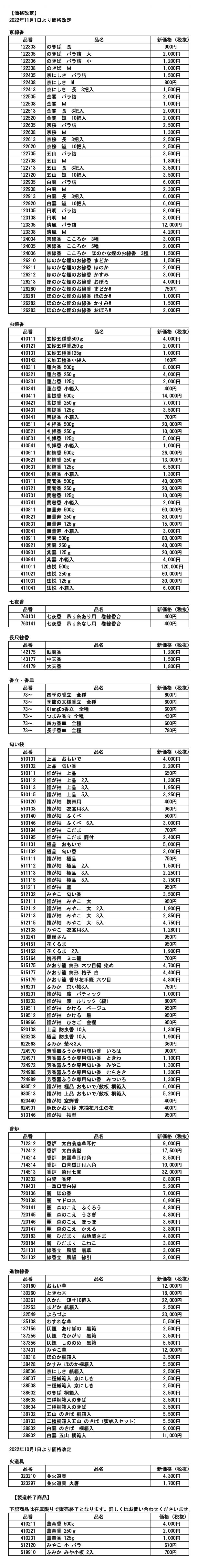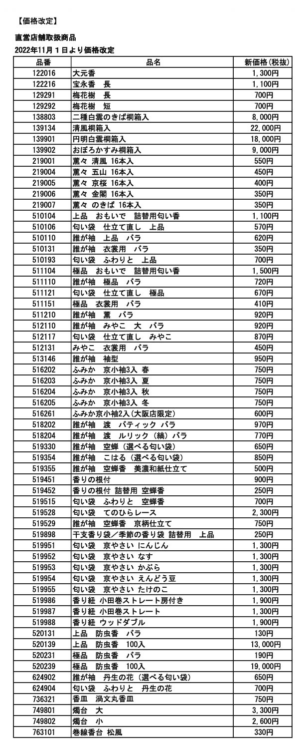 つきましては、来る2022年11月1日をもって、複数製品を新しい価格に改定し、また製品によっては販売終了させていただく運びとなりました。